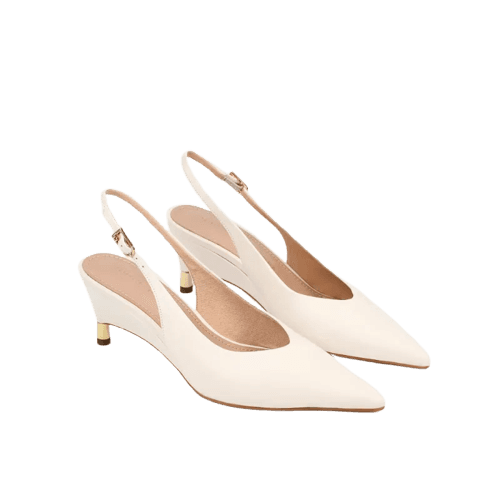 Este look exala elegância e versatilidade, perfeito para a mulher moderna que busca sofisticação sem abrir mão do conforto. O blazer off-white confere um ar polido, enquanto a blusa e a saia mini em verde esmeralda adicionam um toque vibrante e contemporâneo. Os sapatos slingback e a bolsa de ombro, ambos em off-white, complementam a paleta de cores de forma harmoniosa. O lenço estampado de pêssegos e os brincos dourados são os detalhes que elevam o conjunto, tornando-o ideal para o ambiente de trabalho, reuniões ou um happy hour chic. Uma combinação que transita com facilidade do dia para a noite, garantindo um visual impecável.