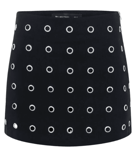Este look exala uma energia gótica urbana com um toque de sofisticação. A t-shirt preta oversized com a estampa 'Disruption' e um castelo sombrio é a peça central, conferindo uma atitude rebelde e artística. Combinada com uma minissaia preta adornada com ilhoses metálicos, o conjunto ganha um ar moderno e ousado. Para elevar o visual, as mules vermelhas de salto adicionam um ponto de cor vibrante e um toque de elegância inesperada. Os óculos de sol retangulares e a bolsa preta em formato de coração com detalhes metálicos completam o look, garantindo um estilo marcante e cheio de personalidade. Ideal para noites de shows, eventos culturais ou um happy hour descolado, este outfit é para quem não tem medo de expressar sua individualidade.