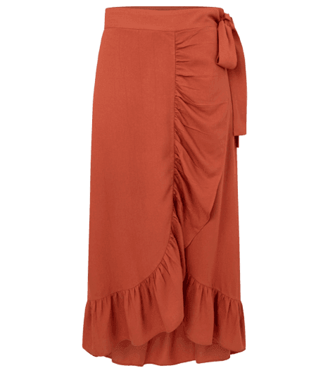 A saia terracota harmoniza lindamente com tons neutros como bege, creme, marrom e preto. Para um toque de cor, experimente combiná-la com verde-oliva, azul marinho ou mostarda, criando contrastes interessantes.