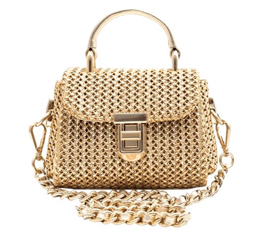 Acessórios em tons dourados, como o relógio e a bolsa de palha com detalhes metálicos, complementam perfeitamente a leveza do look. Óculos de sol também são essenciais para um toque final.