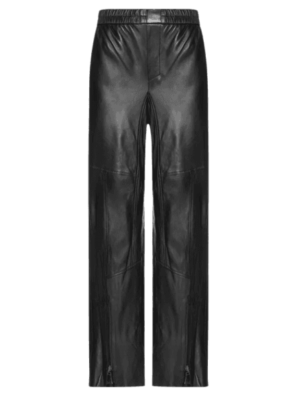 Este look exala sofisticação e modernidade, perfeito para quem busca um visual impactante em eventos noturnos. A blusa de renda transparente, com seus detalhes delicados e amarração frontal, contrasta lindamente com a calça de couro preta de corte reto, criando uma harmonia entre o romântico e o edgy. A sapatilha slingback com cadarços e detalhes dourados adiciona um toque de elegância e conforto, enquanto a bolsa hobo preta e os brincos de esferas douradas finalizam o conjunto com um brilho sutil e refinado. Uma escolha impecável para jantares, coquetéis ou qualquer ocasião que peça um estilo marcante.
