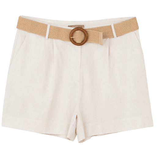 Este look feminino exala um charme casual chic, perfeito para os dias ensolarados de verão. A blusa azul marinho com detalhes de babados nas mangas oferece um toque de feminilidade e leveza, harmonizando com o shorts off-white de cintura alta e cinto de palha, que traz uma textura natural e um ar descontraído. O tênis plataforma branco garante conforto e um toque moderno, ideal para longas caminhadas ou um dia agitado. A bolsa tiracolo branca e os óculos de sol tartaruga completam o visual com praticidade e estilo, tornando-o versátil para diversas ocasiões diurnas, do passeio no parque ao almoço com amigas.