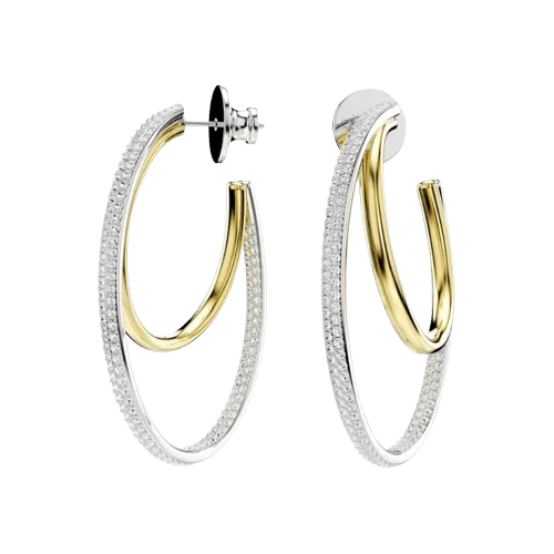 Acessórios discretos e modernos, como uma bolsa estruturada (tipo bucket bag) e brincos de argola com detalhes metálicos, complementam o visual sem sobrecarregar. Um cinto fino marca a cintura e adiciona um toque de sofisticação.