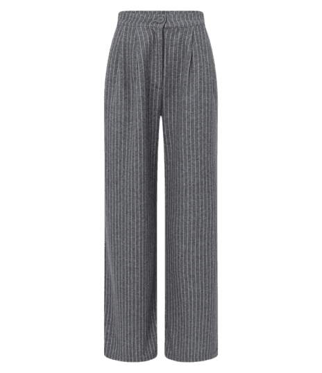 Este look feminino exala sofisticação e versatilidade, ideal para a mulher moderna que busca elegância sem abrir mão do conforto. A jaqueta cropped em tom vinho vibrante adiciona um toque de ousadia e cor, enquanto a calça de risca de giz em cinza oferece um caimento impecável e um ar clássico. A blusa azul clara suaviza a paleta, criando um contraste harmonioso. Os loafers em suede vinho e a bolsa com alça trançada complementam o conjunto com um charme atemporal. Acessórios dourados, como o colar robusto e os brincos, finalizam o visual com um brilho sutil, perfeito para transitar do trabalho a um happy hour.