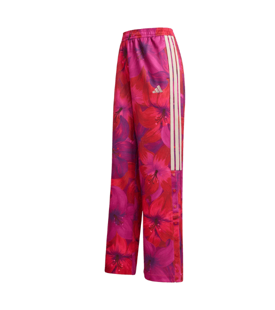 O look se destaca pela sua paleta de cores vibrantes e a estampa floral da calça, que trazem muita personalidade. O contraste entre o estilo esportivo da calça e dos acessórios com o top tomara que caia e o tênis animal print cria um visual moderno, divertido e cheio de atitude, ideal para quem busca expressar sua individualidade.