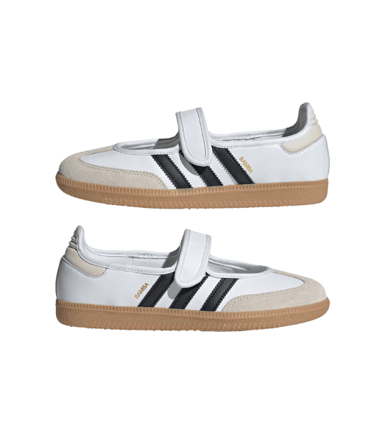 Este look feminino é a personificação do estilo esportivo chic, combinando peças icônicas da Adidas para um visual moderno e confortável. A jaqueta esportiva off-white com as clássicas três listras e a cintura marcada confere um toque sofisticado, enquanto o top cropped preto de alça fina adiciona um ar contemporâneo. A saia curta balonê, também off-white e com detalhes esportivos, traz leveza e movimento. Nos pés, o tênis sapatilha Mary Jane em branco com listras pretas e solado marrom oferece um charme único e muito conforto. A bolsa de ombro preta em material brilhante finaliza o conjunto com elegância, tornando-o ideal para diversas ocasiões, do dia à noite.