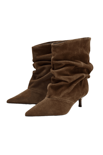 Este look exala sofisticação e elegância, perfeito para os dias mais frios do outono e inverno. A peça central é um casaco longo xadrez em tons de bege e marrom, que adiciona um toque clássico e atemporal. Por baixo, uma blusa acetinada marrom com gola drapeada confere um brilho sutil e luxuoso, harmonizando com a calça pantalona de corte impecável. As botas slouchy em camurça marrom trazem um ar moderno e descontraído, enquanto a bolsa de mão bege e os brincos dourados com detalhes escuros finalizam a produção com um toque de requinte. Ideal para quem busca um estilo chic e confortável para diversas ocasiões.