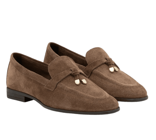 Além dos óculos de sol e mocassim, um cinto fino para marcar a cintura, brincos discretos e uma bolsa tote ou crossbody em tons neutros complementam o visual com harmonia.