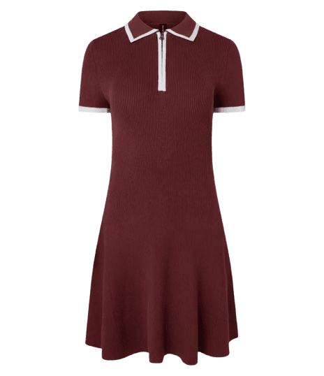 Sim, os acessórios dourados criam um contraste elegante e sofisticado com o tom borgonha do vestido, adicionando um toque de brilho e refinamento ao look casual.