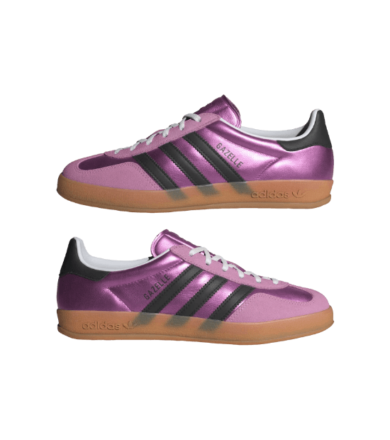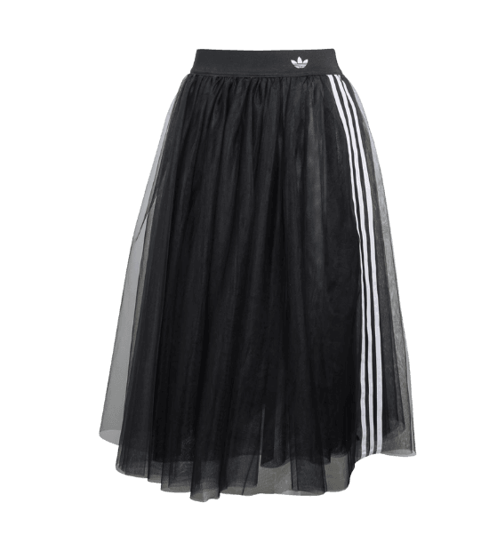 Este look feminino exala uma fusão perfeita entre o clássico e o contemporâneo, ideal para quem busca conforto sem abrir mão do estilo. A saia midi de tule preta, com suas listras laterais icônicas, adiciona um toque esportivo e elegante, enquanto a blusa preta sem mangas complementa a base escura. O ponto alto da produção fica por conta dos tênis metálicos em tom roxo vibrante, que injetam personalidade e um brilho sutil. A bolsa de ombro preta em verniz finaliza o conjunto, tornando-o perfeito para transitar do dia para a noite com facilidade, seja em um evento descontraído ou um passeio urbano.
