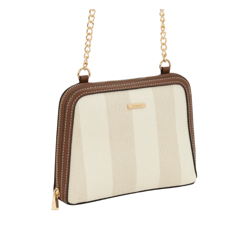 Este look exala um charme casual e contemporâneo, perfeito para quem busca conforto sem abrir mão do estilo. O top com estampa tropical vibrante, em tons de verde oliva, rosa fúcsia e laranja, é o ponto focal, trazendo frescor e alegria. A saia caramelo, com sua textura sutil e caimento impecável, adiciona um toque de sofisticação terrosa. Para completar, o tênis branco oferece o máximo de conforto e um ar despojado, enquanto a bolsa transversal listrada e o colar de elos em resina complementam o visual com elegância discreta. Ideal para um passeio diurno, almoço ou um happy hour descontraído.