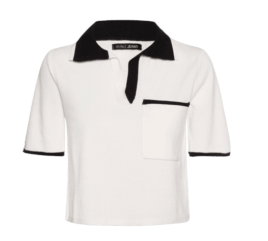 As cores principais são o vermelho vibrante, o branco clássico e o preto elegante. O vermelho adiciona paixão e destaque, o branco traz leveza e sofisticação, enquanto o preto na polo cria um contraste moderno e chic, harmonizando o conjunto.