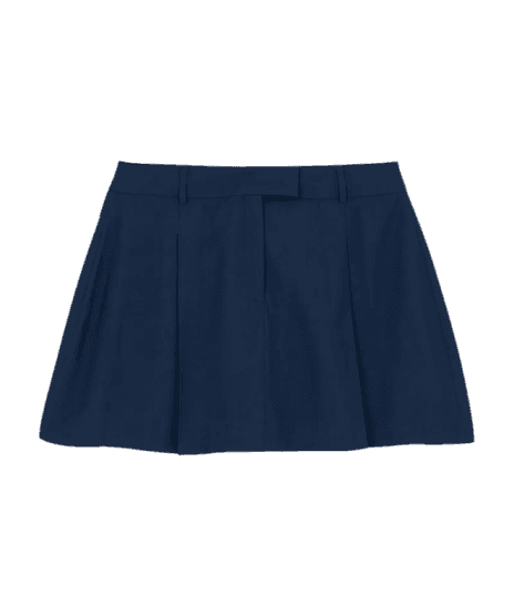 Este look exala uma elegância casual chic, perfeito para a mulher moderna que busca versatilidade e estilo. A combinação do blazer listrado em tom de vinho com a clássica camisa social branca e a saia plissada azul marinho cria um contraste sofisticado e harmonioso. As mules de salto bloco creme adicionam um toque de conforto e tendência, enquanto os óculos de sol com armação dourada finalizam o visual com um charme contemporâneo. Ideal para transitar entre compromissos de trabalho e eventos sociais, este conjunto é a definição de praticidade com refinamento.