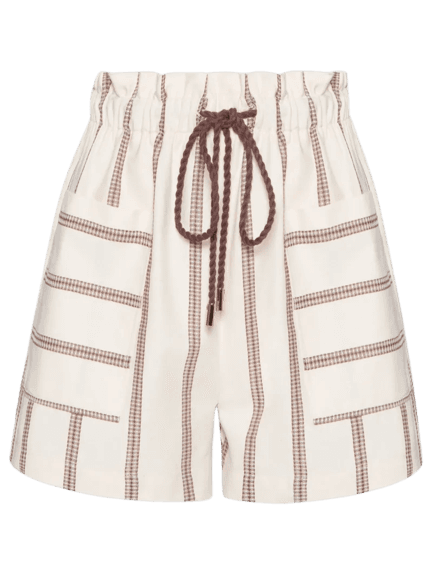 Este look feminino é a personificação do conforto e estilo para os dias ensolarados. A regata canelada em tom burgundy oferece um caimento perfeito, combinada com um shorts de cintura alta em off-white e estampa geométrica sutil, que adiciona um toque de modernidade. O tênis esportivo marrom com detalhes em off-white e burgundy garante o bem-estar para longas caminhadas ou passeios descontraídos. Para completar, o colar de corrente dourada com pingentes e os óculos de sol tartaruga elevam o visual, tornando-o ideal para um almoço casual, um encontro com amigos ou um dia de lazer.