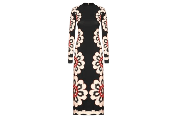 Este look exala uma elegância moderna e versátil, perfeito para a mulher que busca sofisticação sem abrir mão do conforto. O vestido longo preto com estampa floral em tons de bege e vermelho é a peça central, oferecendo um caimento fluido e um toque de arte. A combinação com botas de cano curto pretas, adornadas com fivelas, adiciona uma pitada de ousadia e contemporaneidade. A bolsa hobo preta, prática e estilosa, e as pulseiras douradas com design orgânico finalizam o conjunto, elevando o visual para diversas ocasiões, do dia à noite.