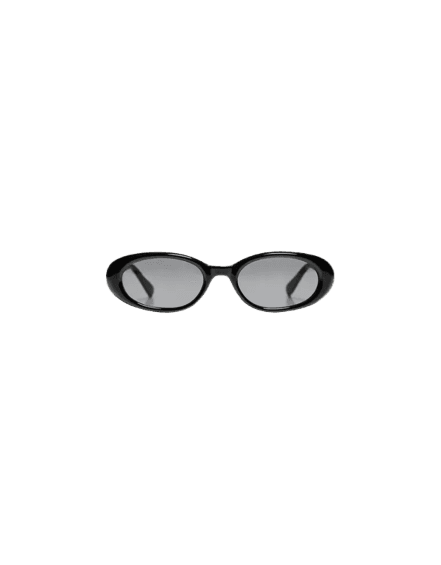 Os acessórios são chave para a personalidade deste look. A bolsa clutch preta com tachas adiciona um toque moderno e edgy, enquanto o sapato slingback marrom com laço traz feminilidade e sofisticação. Os óculos de sol ovais complementam com um ar contemporâneo e chic.