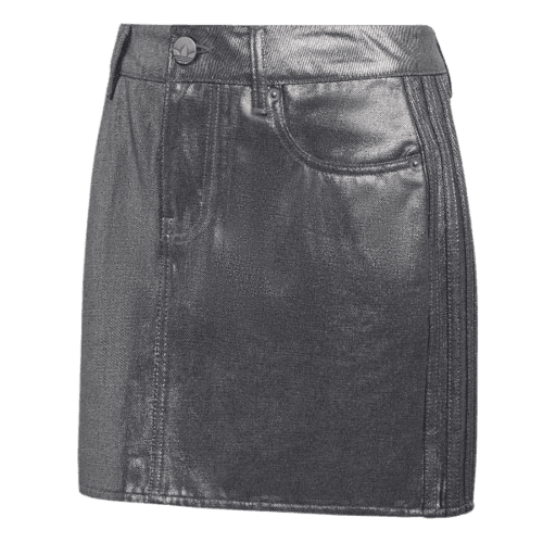 Este look feminino combina o conforto esportivo com um toque de ousadia e modernidade. A jaqueta com estampa animal print e as clássicas três listras adiciona personalidade e um ar descontraído ao visual. Por baixo, uma regata preta básica oferece versatilidade e leveza. A minissaia metalizada traz um brilho sutil e contemporâneo, enquanto o tênis preto garante conforto e um ar descolado para o dia a dia. A bolsa transversal preta com logo vermelho complementa o conjunto, tornando-o ideal para diversas ocasiões, do passeio urbano ao happy hour.