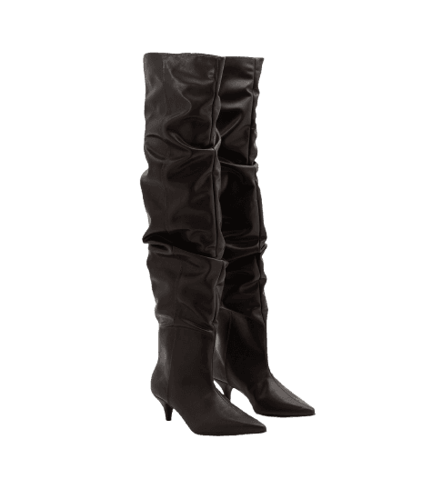 Para o dia, você pode trocar a bota por um scarpin ou sapatilha e a blusa transparente por uma camisa mais discreta, mantendo o blazer e a saia para um visual elegante e confortável.