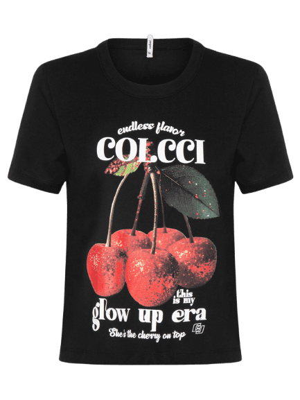 Este look feminino é a união perfeita entre conforto e estilo casual chic. A camiseta preta estampada com cerejas e a marca Colcci traz um toque divertido e moderno. Combinada com uma calça wide leg preta, que possui detalhes de costura contrastante, o visual ganha um ar despojado e elegante. Para elevar a produção, um scarpin slingback preto de salto diferenciado adiciona sofisticação, enquanto a bolsa de ombro vermelha com ferragem dourada injeta um ponto de cor vibrante. Os óculos de sol completam o conjunto, ideal para quem busca um estilo autêntico e versátil para diversas ocasiões, do dia à noite.