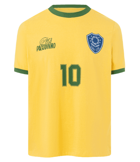 Este look masculino exala conforto e estilo descontraído, ideal para os dias de lazer e para demonstrar paixão pelo futebol. A camisa amarela vibrante, com detalhes em verde, é o ponto central, combinada com uma calça jeans clara de corte reto, que confere leveza ao visual. Nos pés, a sandália papete marrom oferece praticidade e um toque moderno. Os acessórios, como o relógio de pulso cronógrafo e os clássicos óculos de sol aviador, elevam o conjunto, adicionando sofisticação sem perder a essência casual. Perfeito para um dia de jogo, um churrasco ou um passeio relaxante no fim de semana.
