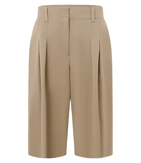 Este look feminino exala sofisticação e modernidade, combinando peças clássicas com um toque vibrante de cor. A bermuda de alfaiataria bege, com seu corte impecável, forma a base elegante, enquanto a regata verde lima de gola alta adiciona um ponto de luz e frescor. As botas de cano alto pretas trazem um ar contemporâneo e alongam a silhueta. A bolsa tote preta e os acessórios dourados, como o relógio e os brincos de lua e estrela, completam o conjunto com refinamento. Perfeito para transitar entre compromissos de trabalho e eventos sociais com muito estilo.