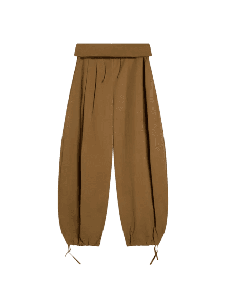 Este look exala conforto e estilo, perfeito para a mulher moderna que busca praticidade sem abrir mão da elegância. A regata off-white de corte reto oferece uma base clean e versátil, enquanto a calça saruel em tom marrom-oliva adiciona um toque de sofisticação descontraída com seu caimento fluido e amarração nos tornozelos. Complementando o conjunto, a bolsa tote marrom-escura e as sapatilhas bege com laço garantem um ar clássico e confortável. Os brincos dourados em formato de sol finalizam a produção com um brilho sutil, ideal para passeios, almoços ou um dia de trabalho casual.