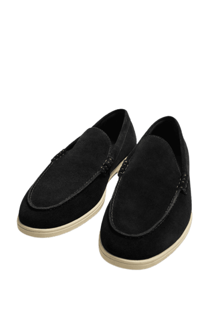 Este look masculino exala uma elegância descontraída, perfeita para o homem que busca conforto sem abrir mão do estilo. O suéter polo em um sofisticado azul marinho, com sua gola clássica, oferece um toque refinado e atemporal. Combinado com a calça jeans de lavagem marmorizada em tons de cinza, o conjunto ganha uma textura visual interessante e moderna. Para finalizar, o mocassim de camurça preto com solado claro adiciona um ar de sofisticação e praticidade, ideal para transitar entre compromissos diurnos e eventos noturnos. Uma escolha versátil para o dia a dia, happy hours ou fins de semana com muito estilo.