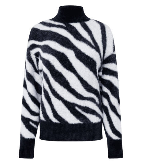 Este look feminino de inverno exala uma vibe urbana e moderna, perfeita para quem busca estilo e conforto. O suéter de gola alta com estampa zebra é a peça central, adicionando um toque ousado e contemporâneo. Combinado com uma elegante saia midi de couro preta, o visual ganha sofisticação e atitude. As botas coturno robustas trazem um elemento edgy e prático, ideal para o dia a dia ou para explorar a cidade. A bolsa de ombro preta com detalhes em corrente prateada e os anéis com pedras naturais complementam o conjunto, adicionando charme e personalidade. Uma escolha versátil para diversas ocasiões no outono e inverno.