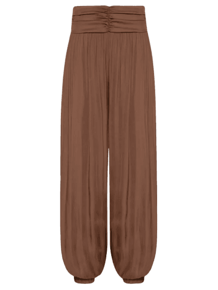 Este look exala um charme casual chic, perfeito para quem busca conforto sem abrir mão do estilo. A combinação do colete de alfaiataria em verde militar com a regata canelada em tom menta cria uma base sofisticada e fresca. A calça harem marrom, com seu caimento fluido e cintura marcada, adiciona um toque moderno e descontraído. Os acessórios, como a sandália rasteira com pedrarias turquesa e a bolsa de mão estruturada, elevam a produção, enquanto o colar choker com pingente traz um ponto de destaque. Uma opção versátil para o dia a dia ou eventos informais.