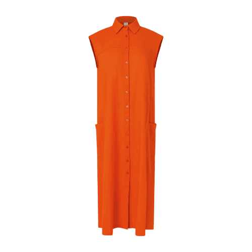 Este look exala uma energia vibrante e um conforto inegável, perfeito para os dias ensolarados. O vestido chemise laranja, sem mangas, é a peça central, oferecendo um caimento fluido e descontraído. A sandália papete preta, robusta e estilosa, garante o conforto para longas caminhadas, enquanto a bolsa de ombro marrom em camurça adiciona um toque orgânico e prático. Os óculos de sol quadrados e os acessórios dourados, como os brincos e o colar com pingente, finalizam o conjunto com um toque moderno e sofisticado. Uma gargantilha preta discreta complementa a composição, ideal para quem busca um estilo casual chic e cheio de personalidade.