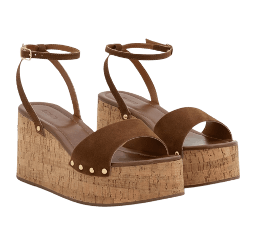 Para um toque noturno, você pode trocar a sandália anabela por um salto mais fino, adicionar joias mais brilhantes e talvez uma bolsa de mão estruturada.