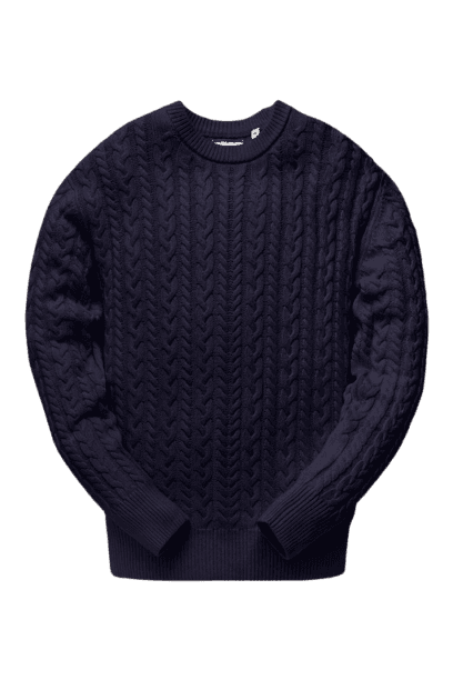 Este look masculino exala um charme casual chic, perfeito para quem busca conforto sem abrir mão da elegância. O suéter de tricô azul marinho, com sua textura rica, é a peça central, harmonizando perfeitamente com a calça chino bege de corte impecável. Para complementar, o cinto trançado preto adiciona um toque artesanal, enquanto os tênis de couro pretos com solado claro garantem um ar moderno e descontraído. Os óculos de sol escuros finalizam o conjunto, conferindo um toque de sofisticação e mistério. Uma combinação versátil para diversas ocasiões, do trabalho ao lazer.