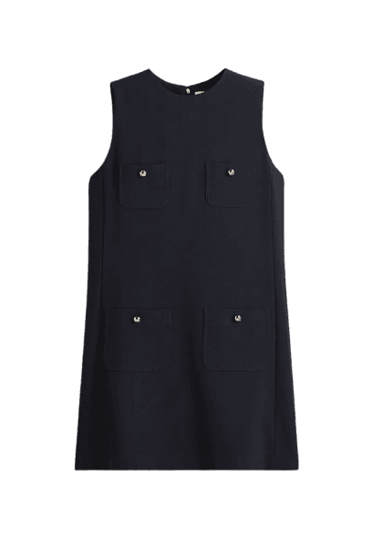 Para um ambiente mais formal, você pode substituir o tênis por um mocassim ou sapatilha elegante, e trocar o boné por um lenço no pescoço ou brincos discretos. A camisa de babados por baixo do vestido já adiciona um toque de sofisticação.