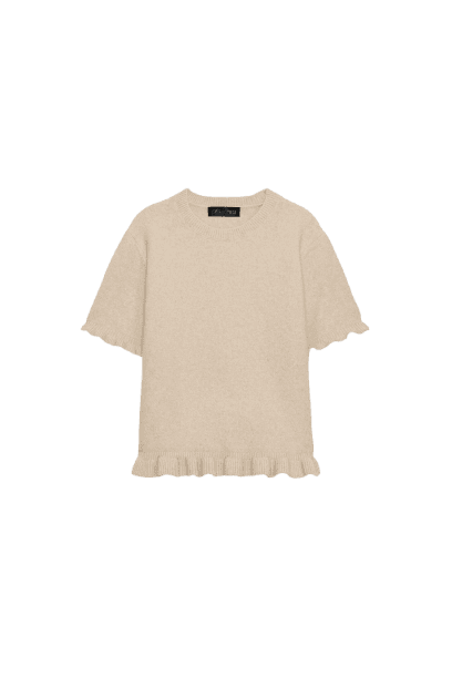 Este look exala sofisticação e modernidade, combinando a ousadia da calça pantalona com estampa snake print em tons neutros com a delicadeza de uma blusa de tricô bege de manga curta e babados. Os acessórios elevam a produção a um patamar de luxo: scarpin dourado metálico, uma bolsa de ombro em camurça marrom e um imponente colar de pérolas em camadas, complementado por brincos e pulseiras douradas. Perfeito para quem busca um visual impactante e elegante, ideal para jantares, eventos sociais ou um happy hour chic, transitando com facilidade entre o dia e a noite.