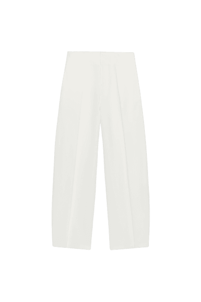 Em dias mais quentes, você pode substituir o cardigã por um blazer leve ou usá-lo aberto. A camisa listrada e a calça pantalona já são peças frescas e podem ser usadas sozinhas para um visual mais leve.