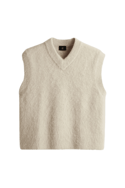 Para dias mais frios, você pode adicionar uma camisa de manga comprida por baixo do colete de tricô e trocar as sandálias por um tênis ou bota casual.