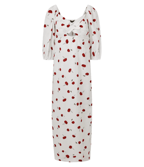 Este look feminino exala frescor e elegância para os dias mais quentes. O vestido midi branco com estampa de cerejas vibrantes é a peça central, trazendo um toque divertido e charmoso. Acompanhado por um blazer branco clássico, o conjunto ganha sofisticação e versatilidade, ideal para transitar entre ambientes. As sandálias espadrille rosa com laço adicionam um toque romântico e confortável, enquanto a bolsa transversal creme e os brincos dourados completam o visual com praticidade e brilho sutil. Perfeito para um brunch, almoço ou passeio de fim de semana.