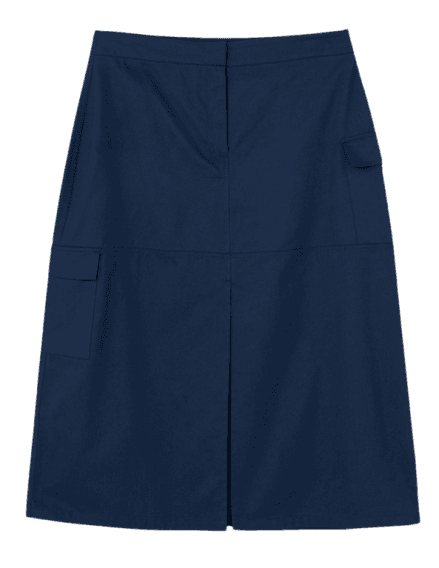 Este look exala uma elegância casual e versátil, ideal para a mulher moderna que busca estilo e conforto. A combinação da camisa listrada em tons de azul e branco com a saia midi azul marinho cria uma base sofisticada e atemporal. Os acessórios, como a sandália de salto bloco dourada e a bolsa tiracolo branca, adicionam um toque de luminosidade e modernidade. O óculos de sol e o colar prateado complementam a produção, tornando-a perfeita para diversas ocasiões, do trabalho a um almoço especial ou happy hour. É um conjunto que transita com facilidade entre o dia e a noite, adaptando-se a diferentes contextos com charme e praticidade.