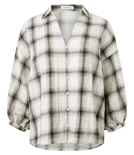 Para um toque mais formal, você pode trocar o tênis por um mocassim ou sapatilha elegante, e a camisa xadrez por um blazer de corte reto em tom neutro. Os brincos de argola podem ser substituídos por um colar mais discreto.