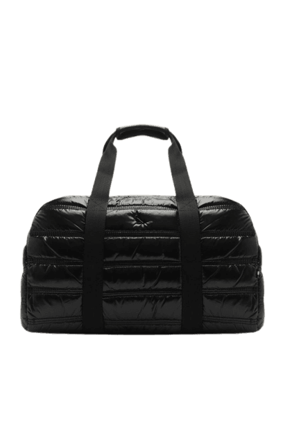 O segredo está na escolha de peças de boa qualidade e no equilíbrio. A jaqueta bomber em tom neutro eleva o jeans preto, enquanto o tênis casual e os óculos de sol mantêm a vibe descontraída. A bolsa duffel completa o visual com funcionalidade e estilo.