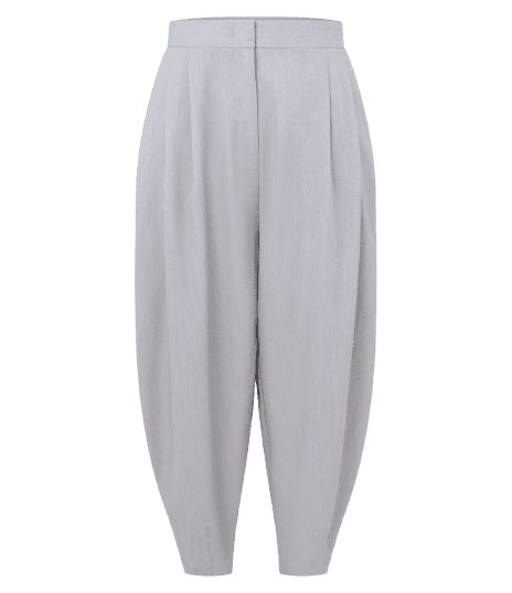 Este look incorpora a tendência da calça balloon, que oferece conforto e um toque moderno, as sapatilhas com detalhes em tachas, que trazem um ar edgy e fashionista, e os brincos statement, que adicionam personalidade e sofisticação ao visual.