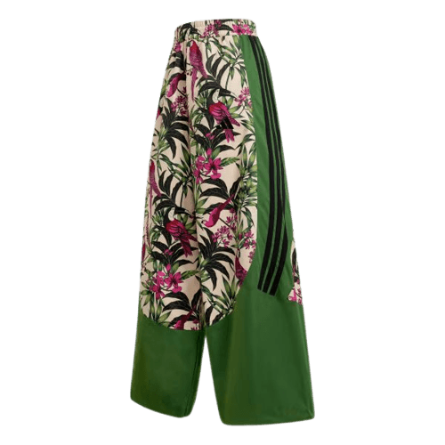 Este look feminino combina conforto e estilo para o dia a dia, ideal para quem busca praticidade sem abrir mão da elegância casual. A calça pantalona verde, com sua estampa floral vibrante, é o ponto focal, trazendo um toque tropical e descontraído. O cropped azul claro complementa a parte de cima com leveza, enquanto o tênis verde com detalhes em rosa e a bolsa tote preta adicionam um toque esportivo e funcional. Perfeito para passeios, encontros com amigos ou um dia de lazer, este conjunto é a escolha certa para um visual moderno e despojado.