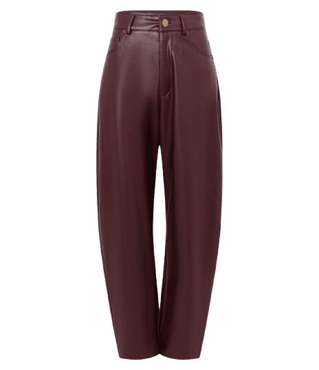 Este look feminino exala sofisticação e versatilidade, perfeito para quem busca estilo sem abrir mão do conforto. A calça de couro sintético em um rico tom bordô é a peça central, combinada harmoniosamente com uma regata de decote V em amarelo suave. Os acessórios dourados, como a sapatilha, o colar e as pulseiras, adicionam um brilho elegante, enquanto a bolsa de ombro com detalhes em bordô complementa o conjunto. Ideal para transitar do dia para a noite, seja em um happy hour, jantar ou evento cultural.
