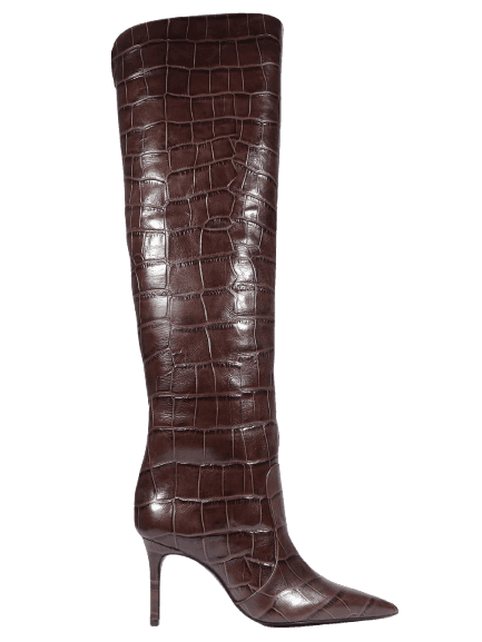 Sim, a textura croco é uma forte tendência e adiciona um toque de sofisticação. Para usá-la sem exagerar, escolha uma ou duas peças com essa textura, como a jaqueta e a bota, e combine com itens mais neutros e lisos, como o jeans, para um equilíbrio elegante.
