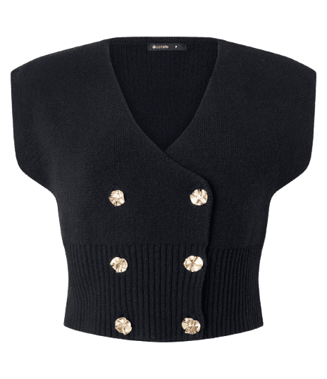 Este look exala um charme casual chic, perfeito para quem busca estilo e conforto sem abrir mão da elegância. A calça jeans wide leg de lavagem média oferece uma silhueta moderna e despojada, enquanto o cardigan cropped preto com botões dourados adiciona um toque de sofisticação e um ar contemporâneo. A sapatilha preta com tachas e a bolsa de mão com alça dourada completam a produção com um toque fashionista. Ideal para um happy hour, um encontro com amigos ou um passeio urbano, este conjunto é versátil e cheio de personalidade, transitando facilmente entre o dia e a noite.