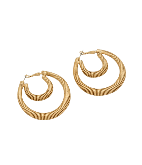 Acessórios dourados, como brincos de argola e uma pulseira discreta, complementam muito bem. Uma bolsa de ombro preta com detalhes metálicos também harmoniza com a paleta de cores.