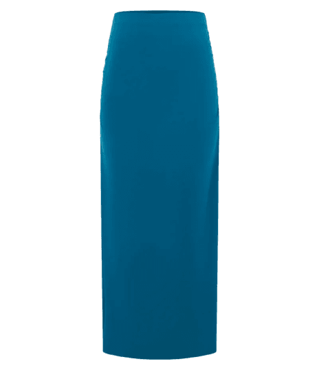 Este look exala sofisticação e versatilidade, perfeito para a mulher moderna que transita entre compromissos profissionais e eventos sociais. O blazer acinturado em off-white confere uma elegância estruturada, enquanto o slip dress delicado com detalhes em renda adiciona um toque de feminilidade e sensualidade sutil. A saia lápis midi em um vibrante tom de teal traz cor e modernidade à composição. Complementado por acessórios dourados que iluminam o rosto e scarpins anabela que garantem conforto e estilo, este conjunto é ideal para um dia de trabalho seguido de um coquetel ou jantar especial.