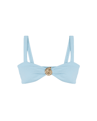 Este look encapsula a essência do verão com um toque de elegância descontraída. O biquíni azul claro de cintura alta oferece conforto e estilo, perfeitamente complementado por uma saída de praia rendada em tom neutro, ideal para transitar da areia para um almoço à beira-mar. Acessórios como o chapéu de palha, óculos de sol modernos e uma bolsa de palha adicionam funcionalidade e charme. Os chinelos estampados finalizam o visual, garantindo leveza e um toque divertido para seus dias de sol e lazer.