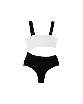 Prepare-se para dias ensolarados com este look de praia que combina conforto e sofisticação. O maiô recortado em preto e branco oferece um toque moderno, enquanto a saída de praia de crochê off-white adiciona leveza e elegância. Os acessórios, como o chapéu de palha estilo canotier, os óculos de sol gatinho e a bolsa de palha, complementam perfeitamente a vibe de verão. Os chinelos com brilho garantem conforto sem abrir mão do estilo. Ideal para um dia relaxante na praia, à beira da piscina ou um passeio charmoso no resort.
