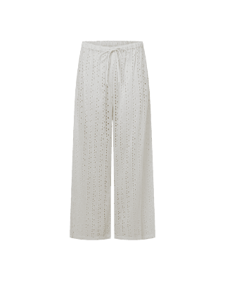 Este look de verão é a personificação da leveza e do estilo para os dias ensolarados. Com um biquíni azul claro que evoca a serenidade do mar, combinado com uma elegante calça pantalona de renda off-white, ele oferece a transição perfeita da areia para um almoço à beira-mar. Os acessórios, como o chapéu e a bolsa de palha, e os óculos de sol modernos, não só complementam o visual, mas também garantem proteção e praticidade. Os chinelos estampados adicionam um toque divertido e descontraído, ideal para aproveitar cada momento de suas férias. Um conjunto harmonioso que une conforto e sofisticação para a estação mais quente.